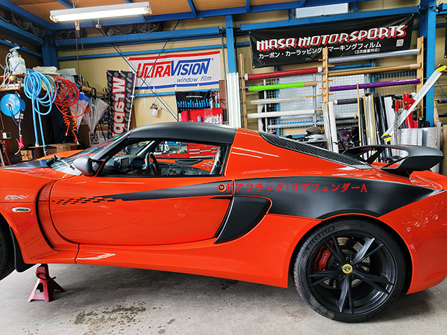 > LOTUSExigeロータスエキシージドアフラッグ+リアフェンダーAカスタムカーボンシート左右外装ドレスアップカーラッピング岐阜masa発