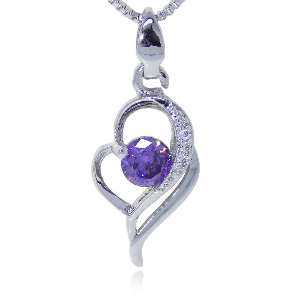 - 残り1点★新品★送料無料 ハート 4連CZアメジストダイヤモンド ジルコニア シルバー925 ネックレス プラチナ仕上 レディースアクセサリー
