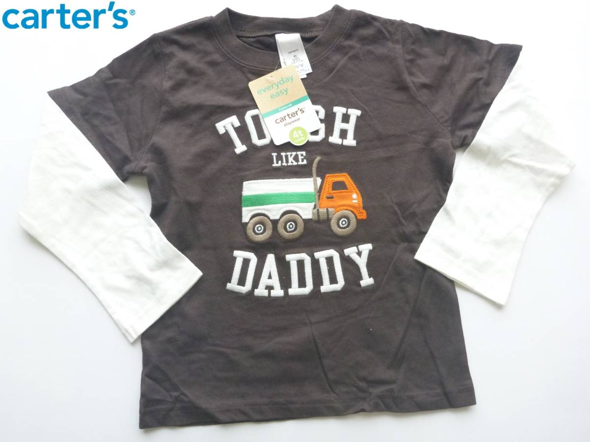 > 新品 carter's カーターズ ★ 茶×白 重ね着 刺繍 アップリケ ダンプカー 長袖 Tシャツ 100~110相当