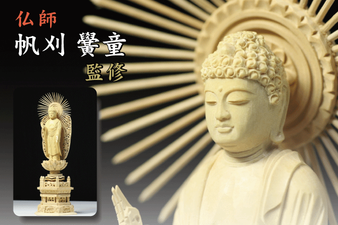 > 仏像 ■ 6寸 ■ 阿弥陀如来立像 六角台座 総柘植 浄土真宗 大谷派 ご本尊 ■ 仏具 (高さ39.7cm×幅15.0cm×奥行き11.5cm)