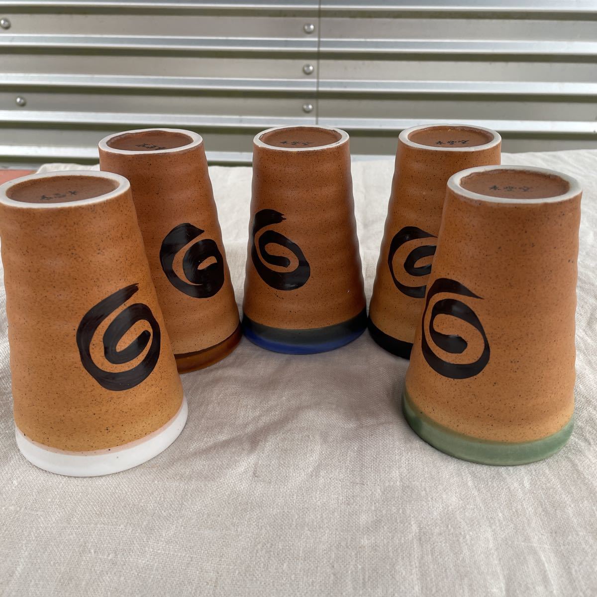 - ◎てがき◎永豊窯◎酎ハイカップ◎セット◎茶◎グリーン◎白◎黒◎ブルー◎安定感有り◎Gー1195