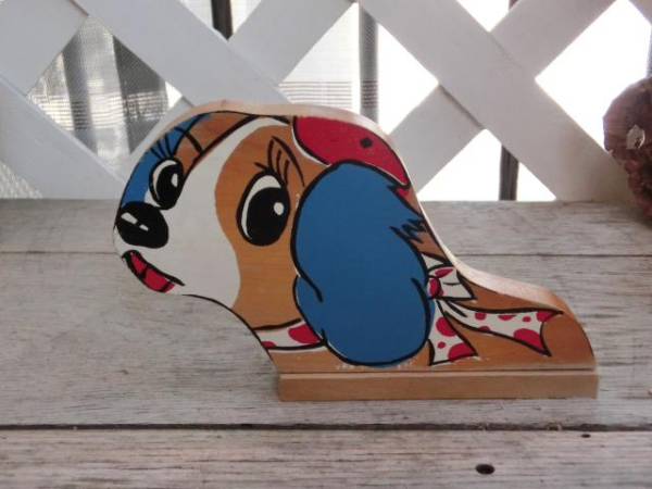 - レトロビンテージ雑貨*使い方色々木のパーツ*ベレー帽リボンワンちゃん*ブルー*B☆古道具リメイク