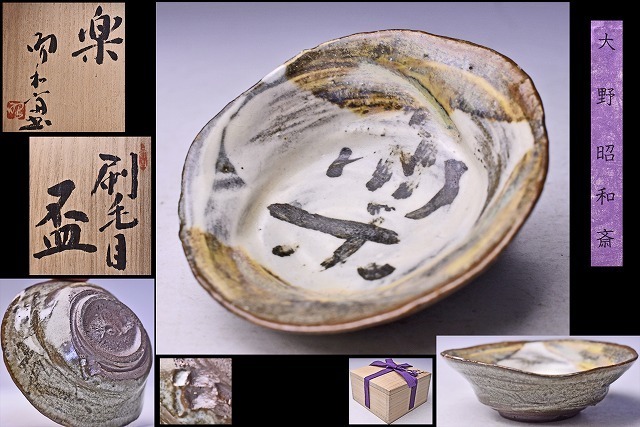 > 大野昭和斎 初代 ★ 刷毛目「 楽 」ぐい呑 ★ 共箱 栞 ★ 人間国宝 ★ 木工芸の匠 ★ 希少な陶芸作品 ★ 酒器 ★
