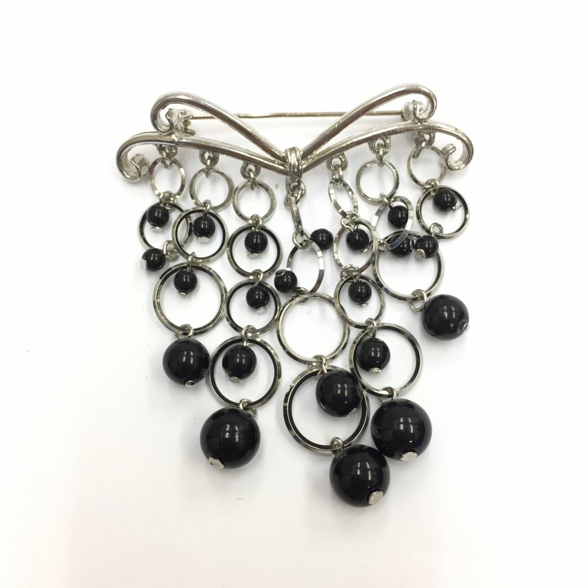 - 【ブローチ】約7.4×6.5cm 躍動感あるデザイン 銀色と黒色のモダンな色合い アクセサリー