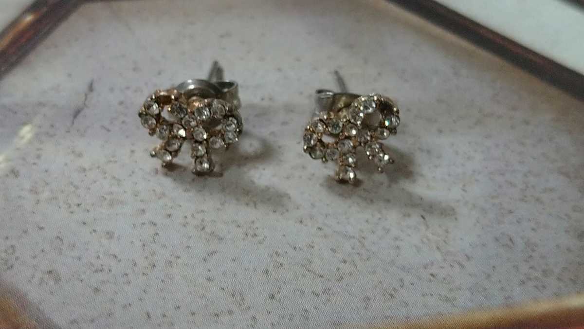 - □訳あり□シルバーカラー×ラインストーン・リボンモチーフ 小さなピアス□