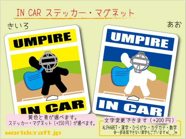 > ■_ IN CARステッカー 野球・ソフトボール 審判バージョン色選択可能 ■シール 磁石 車に ステッカー/マグネット選択可能☆アンパイア ot