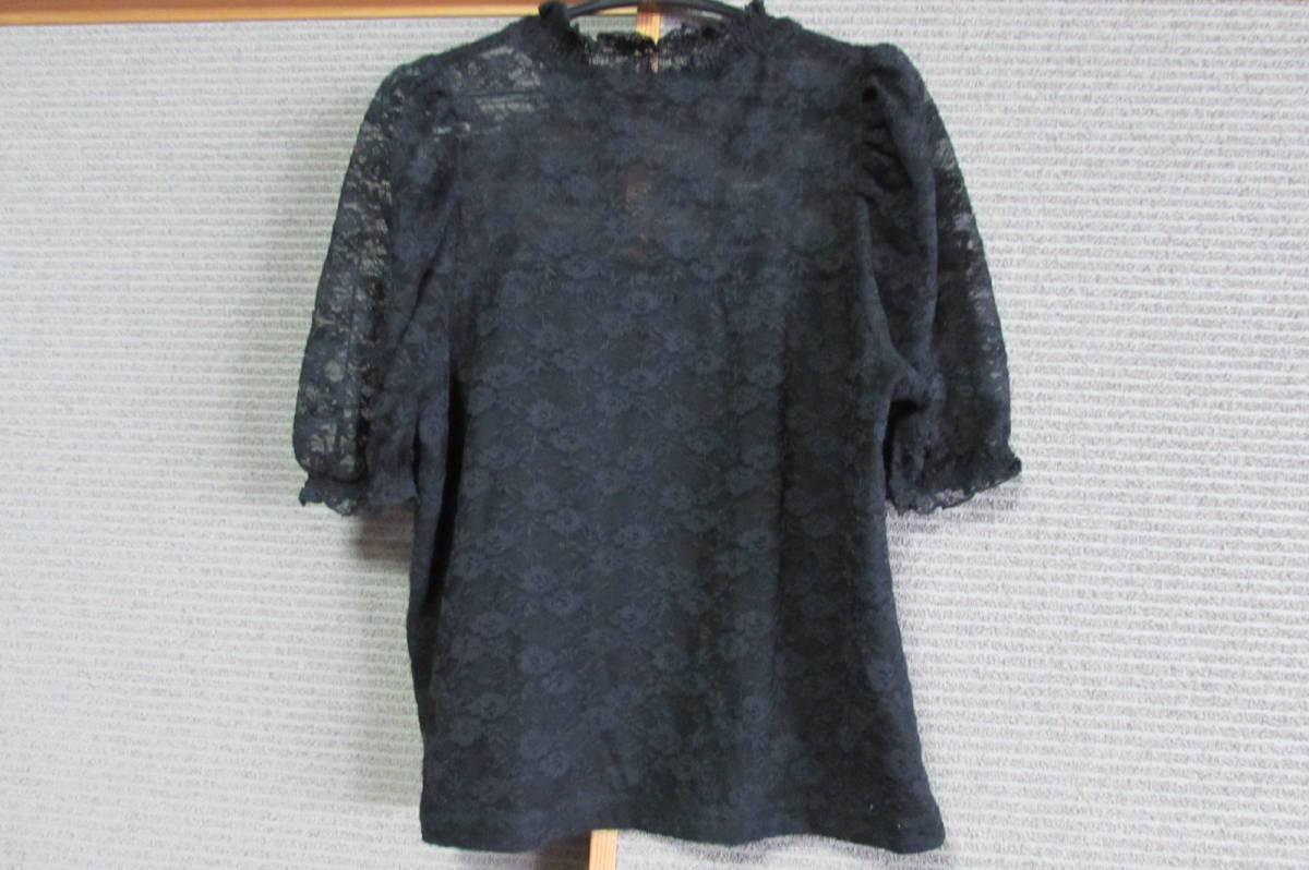 - ★レディース半袖ブラウス黒色 フリーサイズ 中古送料無料★