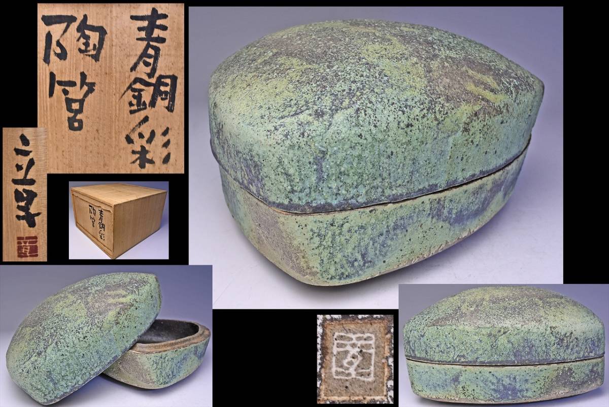 - 宮澤章 ★ 青銅彩陶筥 ★ 共箱 ★ 30cm ★ 益子 ★ 検: 薄田浩司 青銅器風喰籠 ★