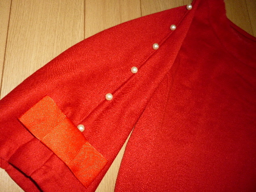 - 送料無料★DOME・パール&リボンがお洒落なレッド系・長袖・チュニック★未使用