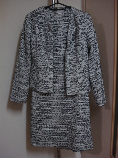 > 格安2点セット!可愛いガーリー・GU (ジーユー)・高級感のある白黒ツイード風地?・同素材ワンピース&ジャケットのアンサンブル M位?