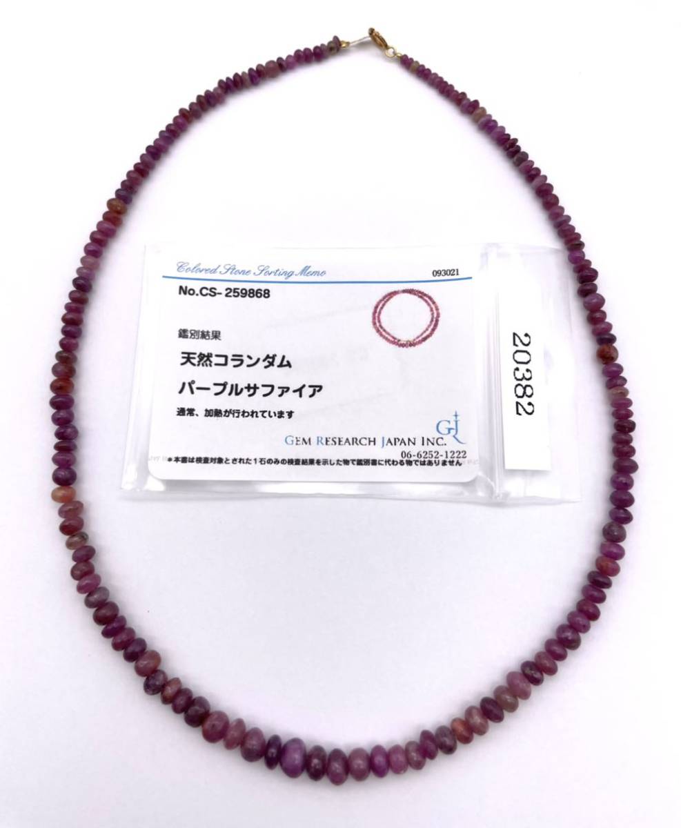 - K18YG パープルサファイア 66ct ネックレス ソーティング付