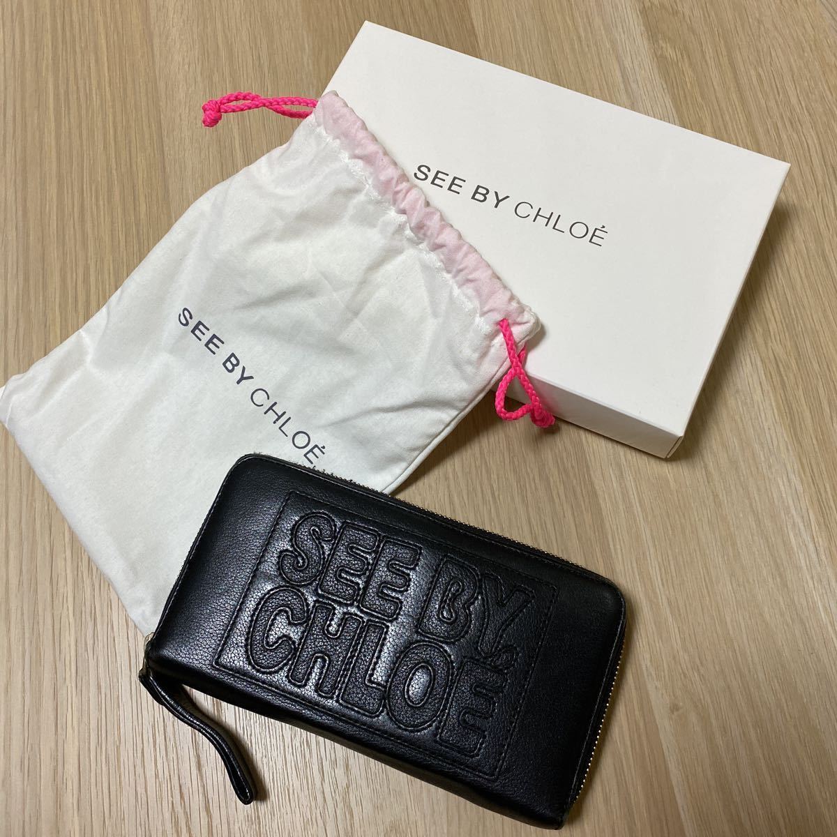 - 正規品 国内購入 付属有 SEE BY CHLOE (シーバイ クロエ) 長財布 箱 巾着 黒 | 本物 ロング ウォレット サイフ レザー 革 BLACK