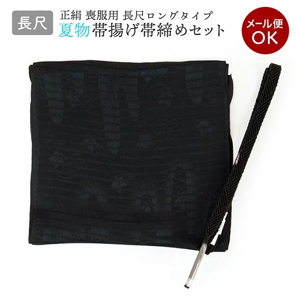 - 長尺 喪服用 正絹 帯締め帯揚げセット(夏用)m-013 メール便 黒 ロング 日本製