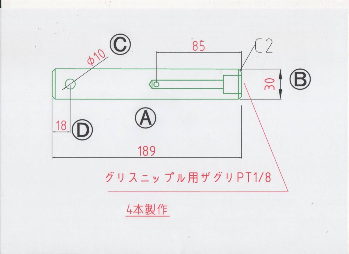 - NO796 Φ30用 長さ189mm グリス穴付きバケットピン 4本 1セット