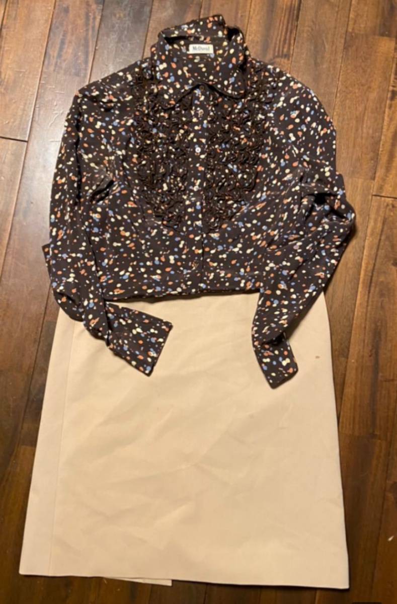 - McDavid マックデイビッド 茶系 シルク100% 長袖 ブラウス イタリー製 42/M相当