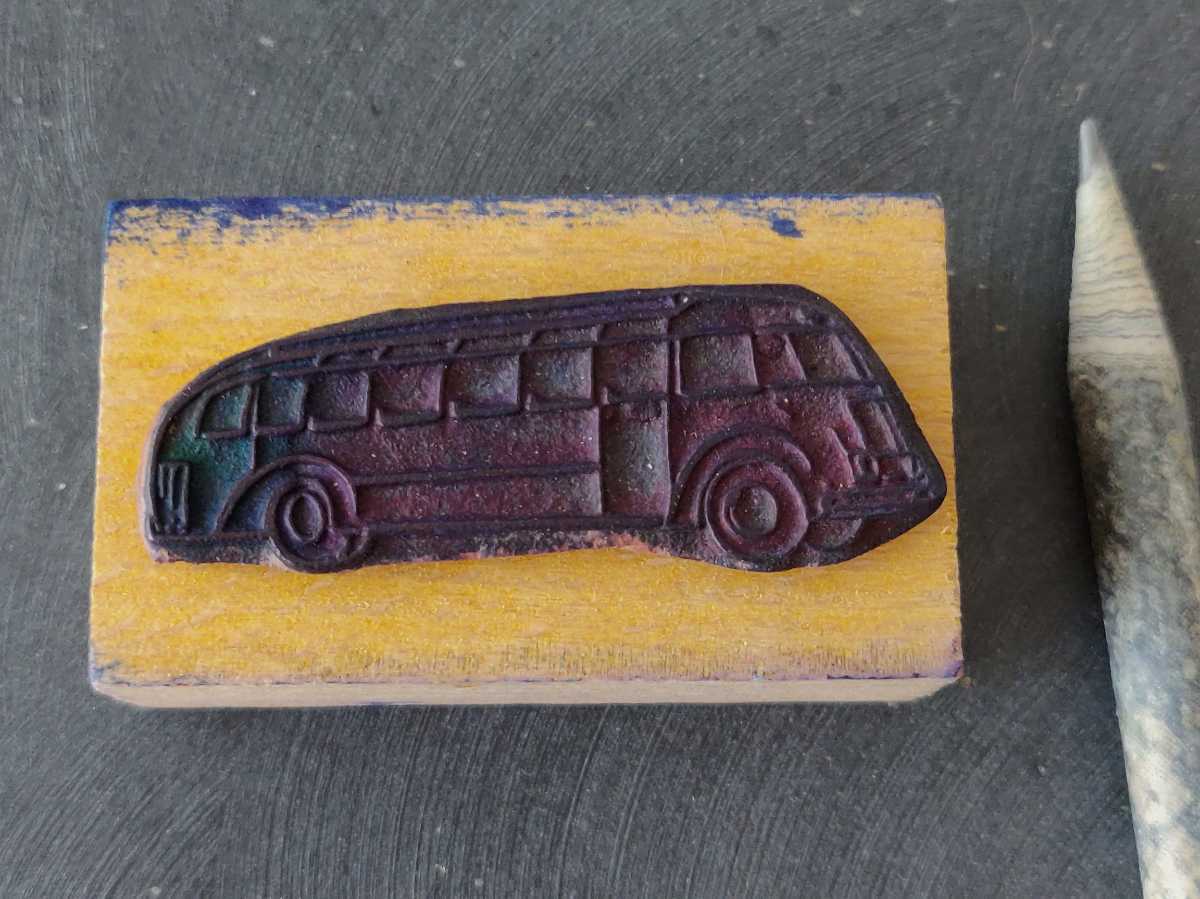 > スクールバス 車両 フランス アンティーク スタンプ ヴィンテージ ハンコ 交通手段 乗り物 子供 学校 教材 仏 雑貨 レトロ