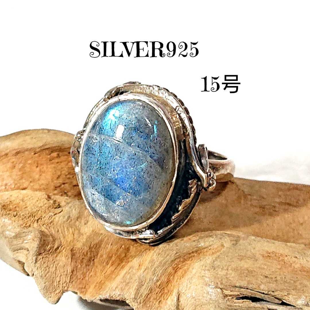 > 4920 SILVER925 ラブラドライトリング15号 シルバー925 天然石 インディアンジュエリー オーバル ブルー系 アラベスクヴィンテージ 手作り