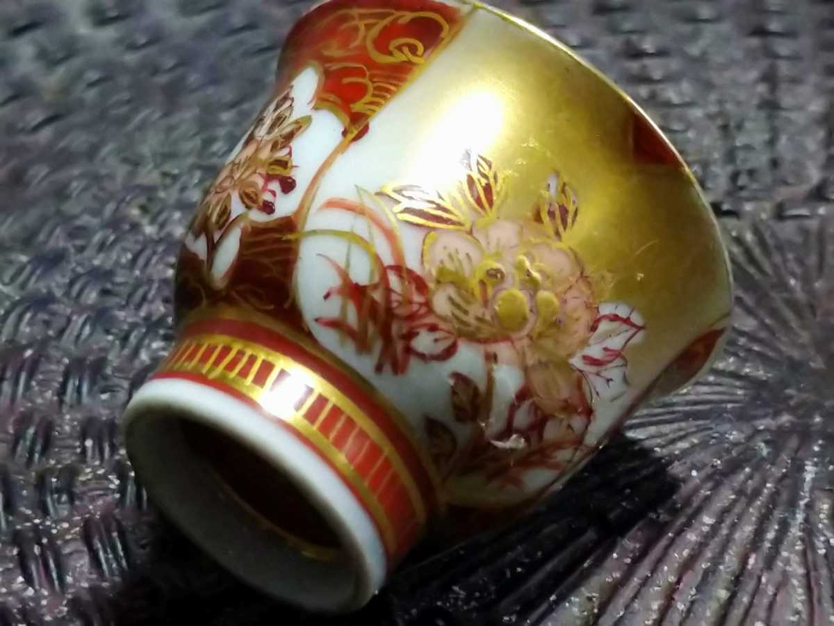 > レア!レトロ!九谷焼!お猪口!ぐい呑!龍山!鮮やか!豪華!アルコールグッズ!置物!飾り物!インテリア!T1