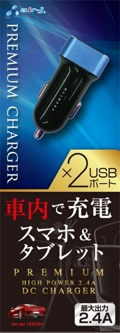 - 出力2.4A 2ポートUSB スマホ&タブレット DC充電器・DKJP24T BL