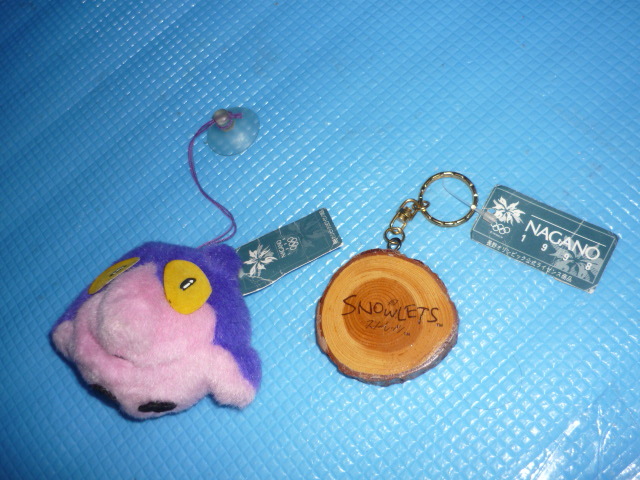 - aレア品★未使用★1998年長野オリンピック マスコット「スノーレッツ」 吸盤付きぬいぐるみと木キーホルダー