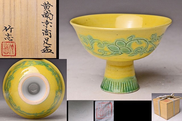 > 川瀬竹志 ★ 黄南京 高足 ぐい呑 ★ 共箱 共布 ★ 色鮮やかな丁寧な仕事の逸品 ★ 京焼 酒器 ★検 川瀬忍 川瀬竹春