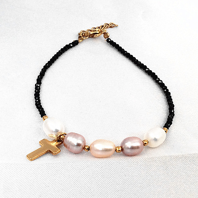 - 淡水真珠 ナチュラル マルチカラー ブラックスピネル 黒尖晶石 ブレスレット