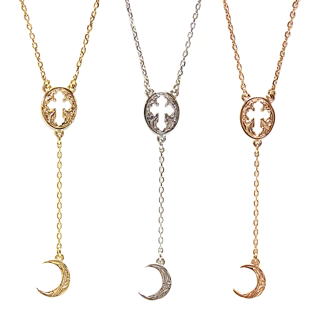 - ★人気★ハワイアンジュエリー★アレルギー&温泉&海水浴OK★ステンロザリオペンダント★ゴールド&ピンクGD&シルバー&クロス&ムーン三日月★