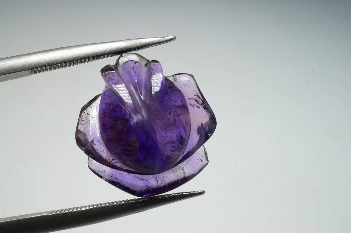 > 【6800円スタート~売切り!早い者勝ちです!】希少30年前の原石を加工彫刻!極上天然アメジスト(紫水晶)特大「花」彫刻研磨高透明度8.8ct