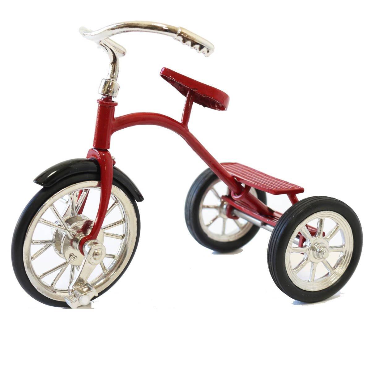 - 三輪車 三輪車ミニチュア 自転車置物 インテリア 可動式 昔ながらの三輪車模型 ドールハウス ミニチュア 1/10 車輪が動く