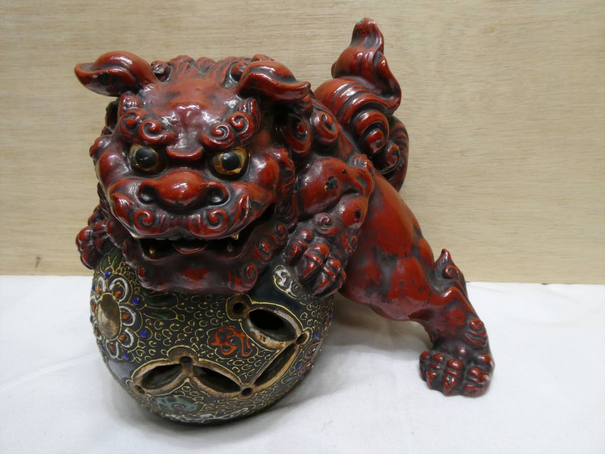 - 九谷焼、玉乗り赤、唐獅子=江戸後期~明治時代、コレクショ、工芸品、陶芸、日本の陶磁、九谷、その他