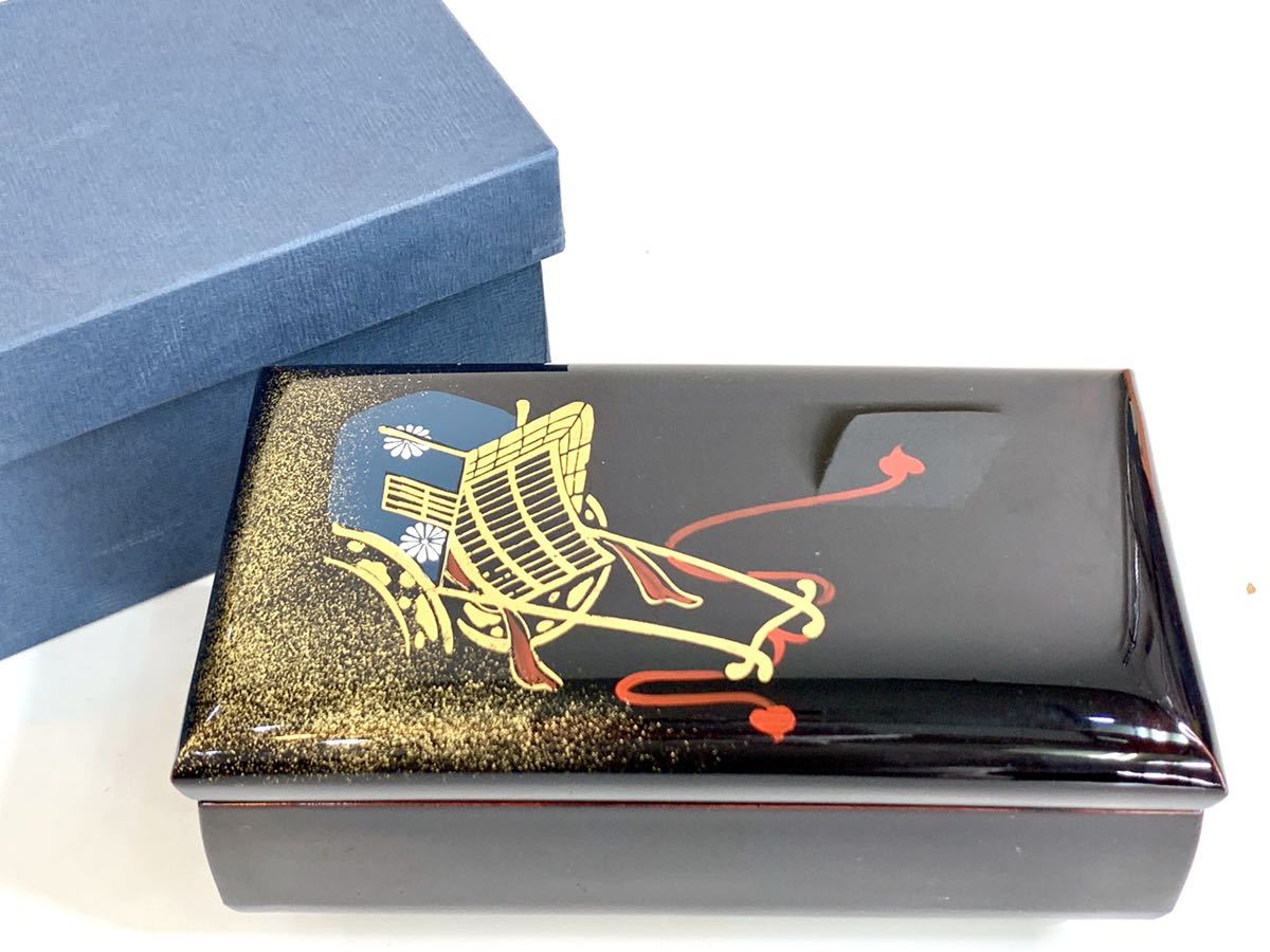- 未使用品▼ Sankyo製 会津塗 ジュエリーボックス 春の海 漆器 御所車 ミュージカルボックス 箱付 管理2111 A-17