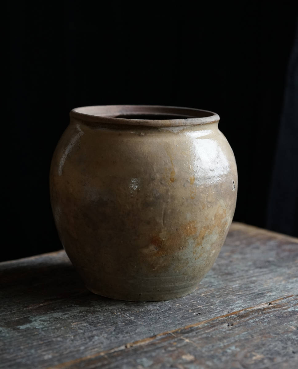 > 雨漏りの美しい白丹波壷 / 幕末~明治 / 花器 花入れ 水差し 茶道具 古道具 アンティーク 骨董 民藝