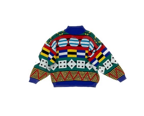 > 米国製 Made in USA BINGO SPORTS モックネック アクリル ニット 派手色 ポップなカラー サイズM [l-2308]