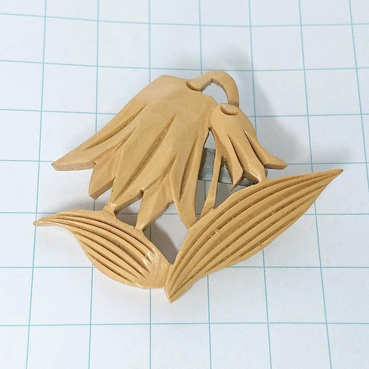 - 送料無料)ビンテージ☆木彫り☆お花デザイン☆アンティークブローチ A05087