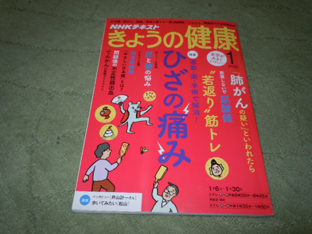 - NHKきょうの健康 ひざの痛み/肺がん/尿酸値/若返り筋トレ/過活動膀胱/てんかん/閉経後の不正性器出血