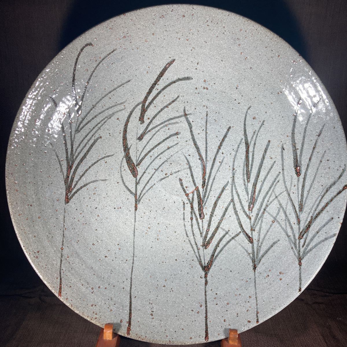 - 浅野陽作 草文大皿 1985朝日陶芸展出品作 共箱 東京藝術大学名誉教授 888