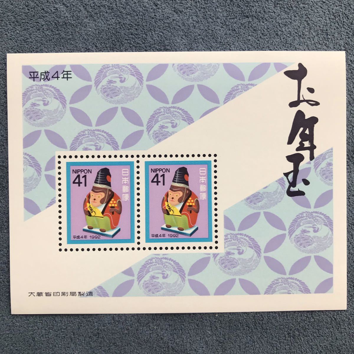 > 年賀切手「平成4年 お年玉切手 小型シート 1枚」41円×2★1992年発行・長期保管品