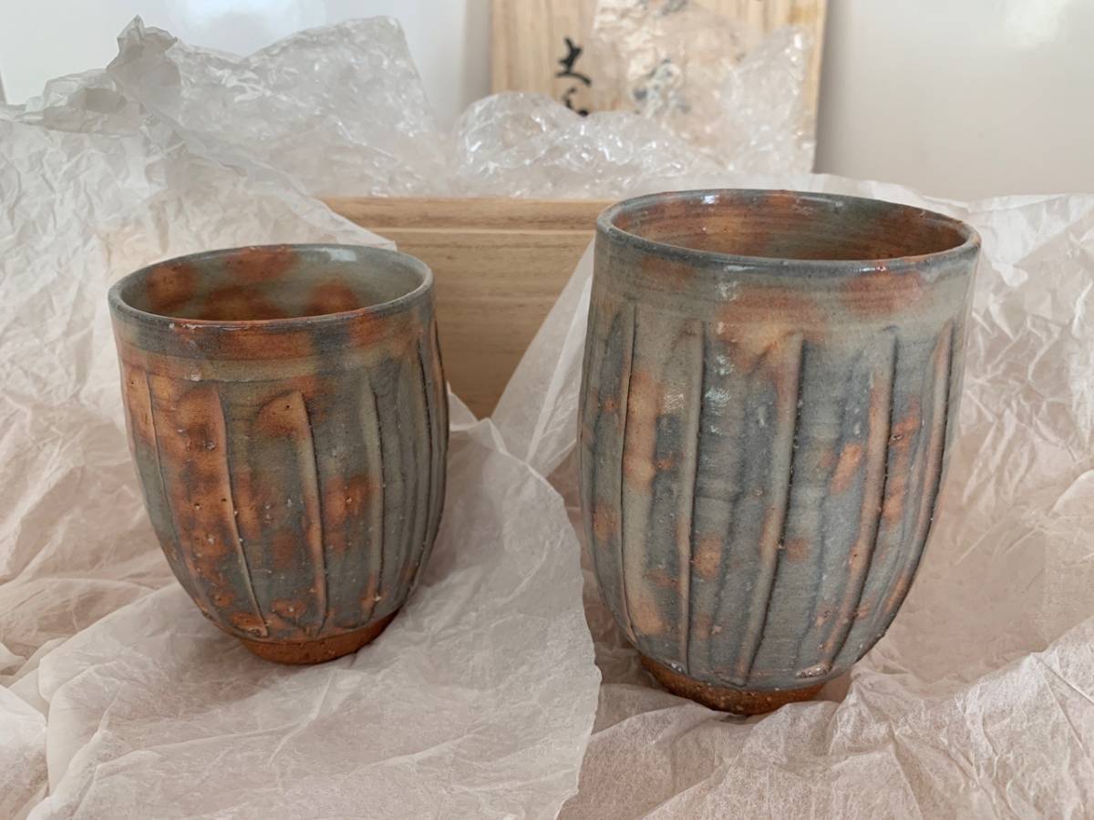 - ★未使用★ 萩焼 大和吉孝松緑窯 大和祐二造 夫婦 湯呑