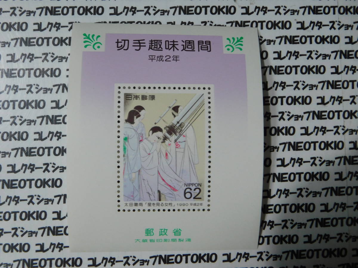 > 切手 平成2年 切手趣味週間 太田聴雨 星を見る女性 大蔵省 62円×1 未使用シート・X
