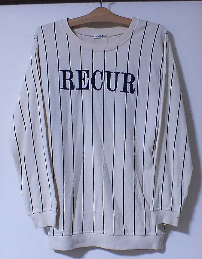 - 古着☆COLZA☆コルザ☆オフホワイトM長袖☆ストライプスウェット☆RECUR