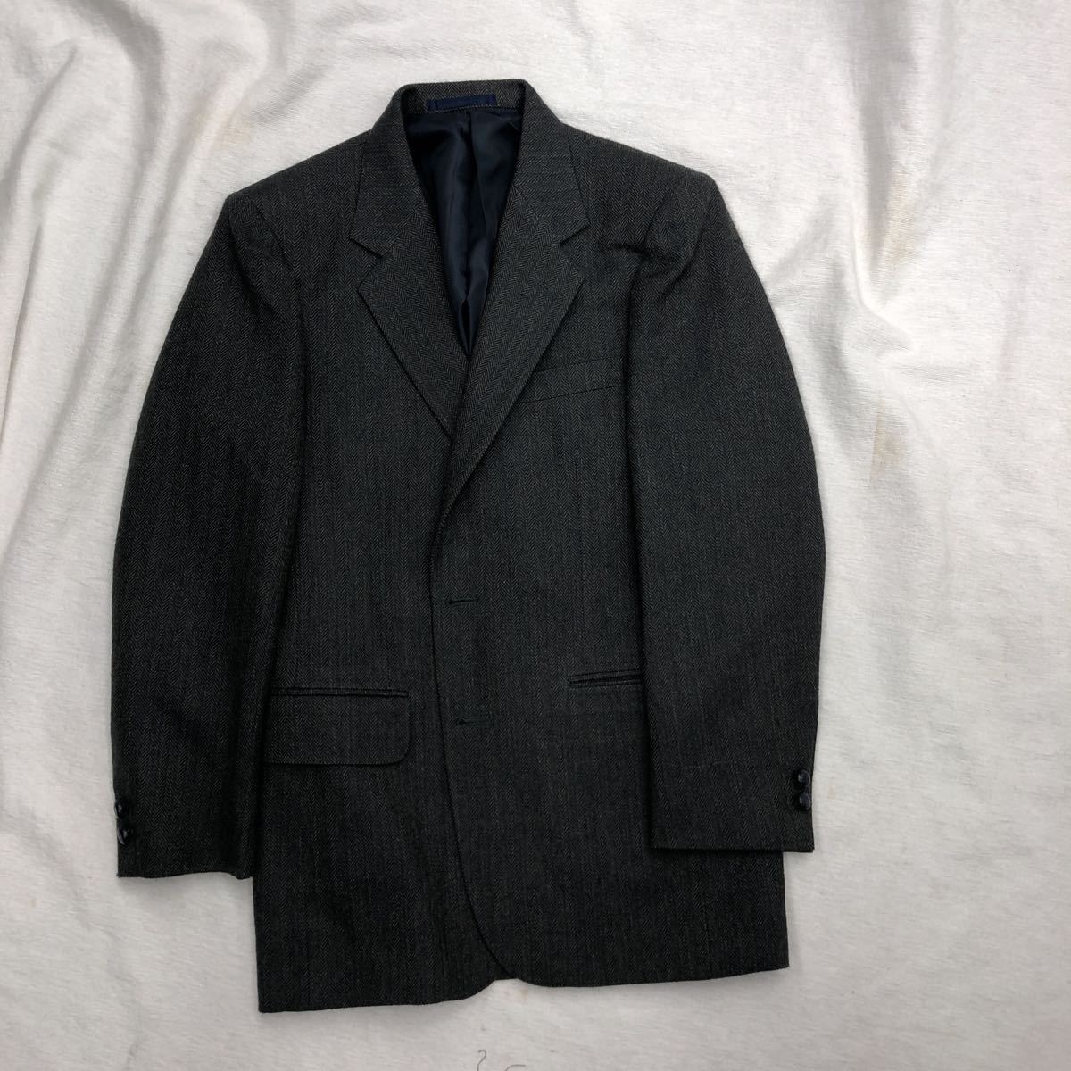 - 新品 未使用 激安 ツイードテーラードジャケット サイズYA5 チャコール系ヘリンボーン織柄 クルミボタン 日本製 コンサバミシンステッチ