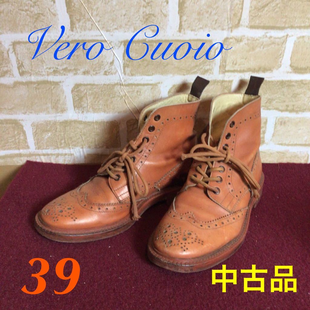 - 【売り切り!送料無料!】A-106 Vero Cuoio! ヴェロキーオ! レースアップブーツ! サイズ39! 約24.5㌢! ショートブーツ! ブラウン系! 中古品!