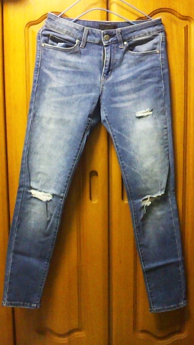 - ..レディース ストレッチデニム 23インチ 『ユニクロ』 中古 良品 穴あきダメージジーンズ