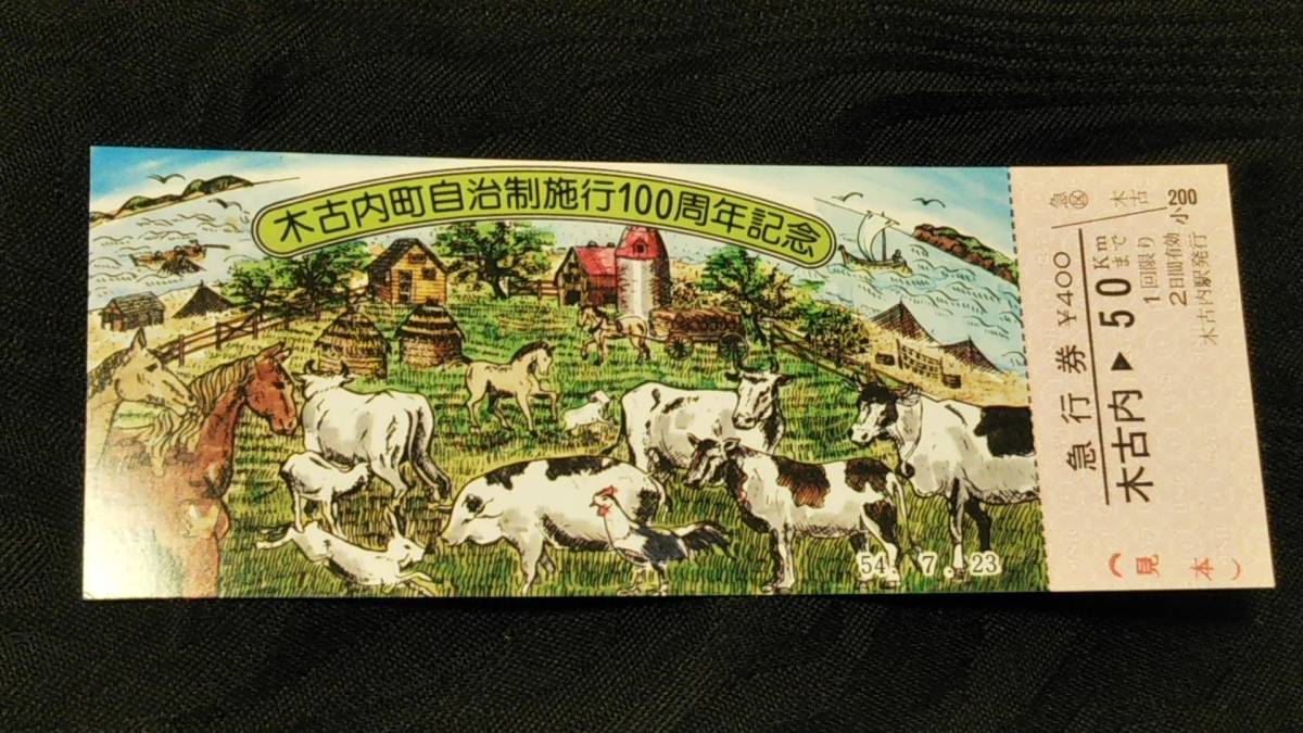 - 0220-11【国鉄記念きっぷ】見本券 木古内町自治制施行100周年記念急行券 昭和56年