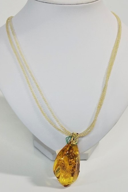 - 85★最終80%OFF 琥珀 天然石 ネックレス 不定型 コニャックアンバー 56cm K18★ABP5906