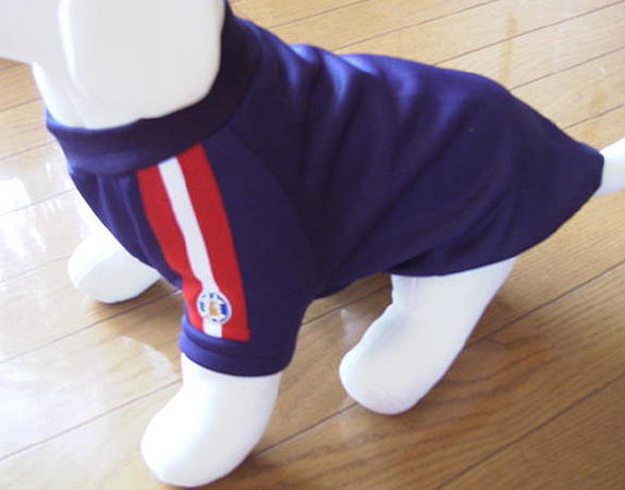 > 犬服AC32■SSサイズ■チワワS等小型犬用紺色ジャージ風Tシャツ*赤2本線ハンドメイド