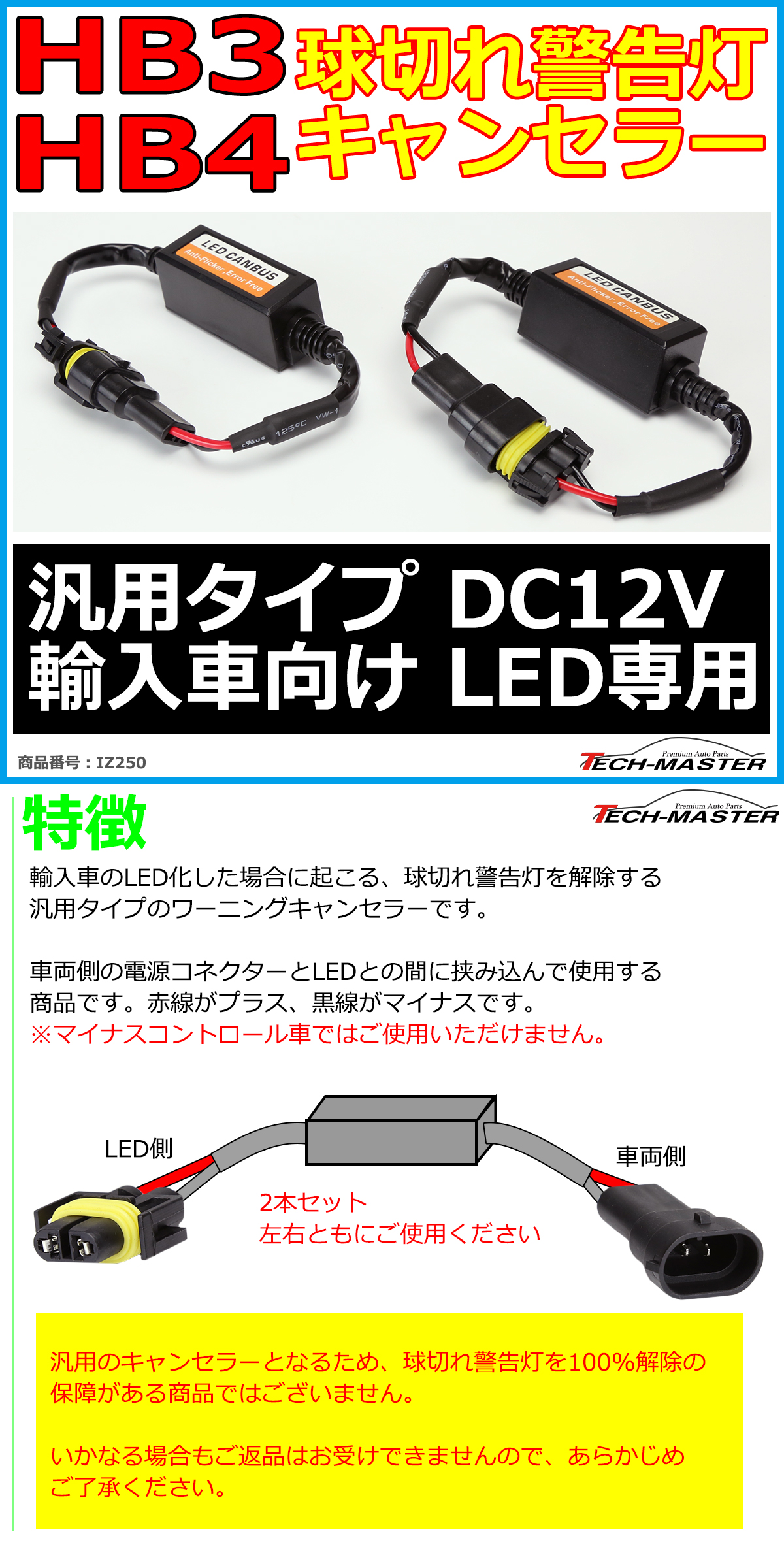 - HB3/HB4 ワーニングキャンセラー 汎用 DC12V 輸入車LED向け 球切れ警告灯 解除 2本 IZ250