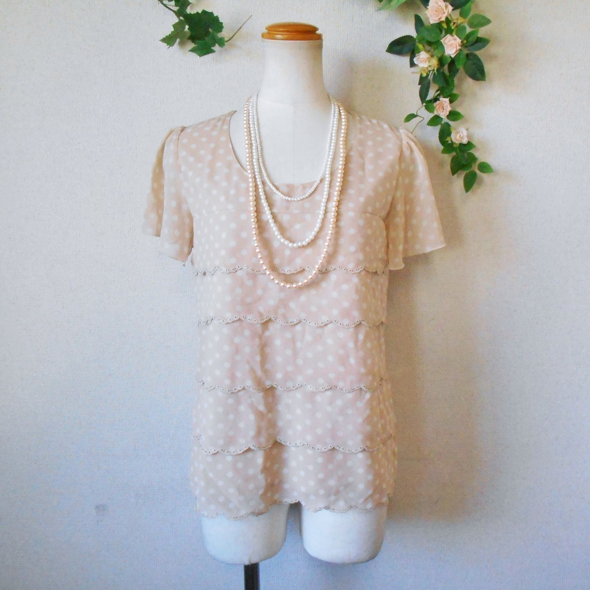 > レッセパッセ LAISSE PASSE 水玉 柄 カットワーク 刺繍 入り 段々 の 可愛い ブラウス 38