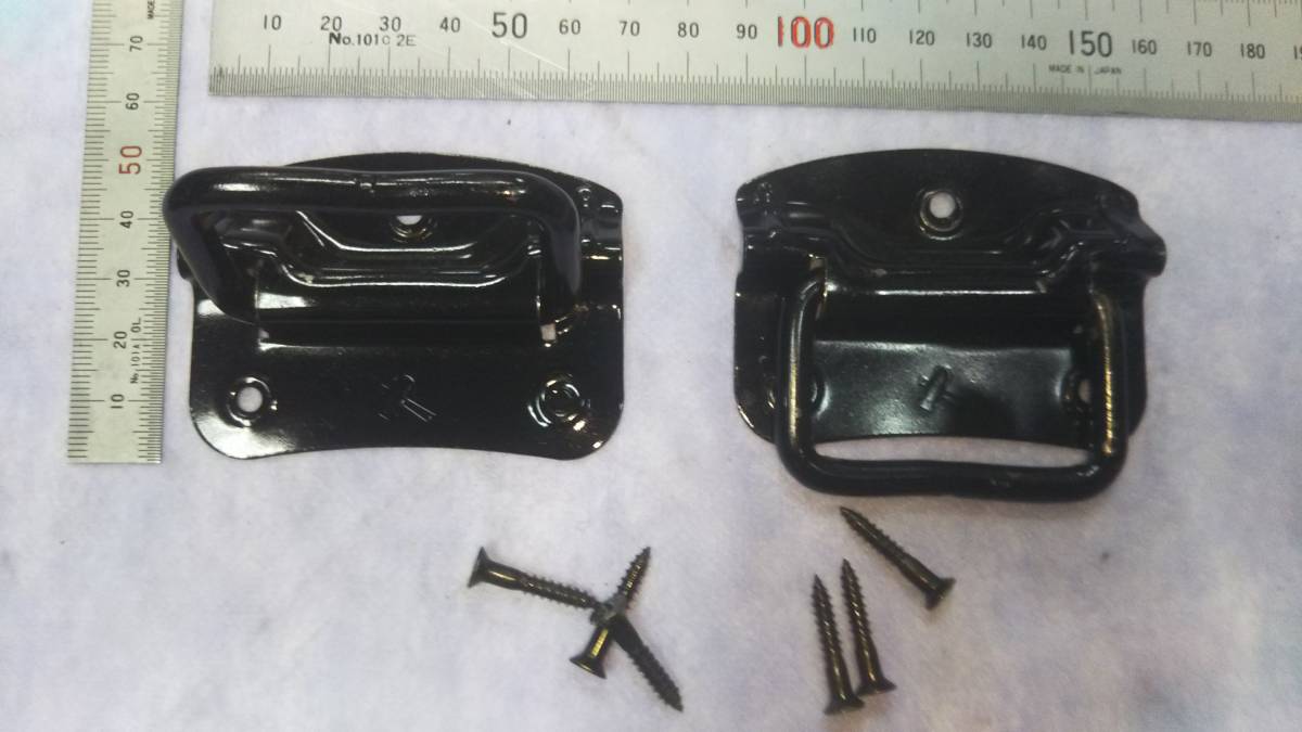 > トランク取っ手 黒色焼付塗装 鉄製 2枚入り ビス付き 収納ボックス CHESTHANDLES アンティーク 在庫31箱有り 送料無料
