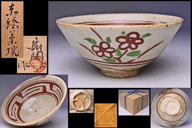 > 加藤舜陶 ★ 赤絵 茶碗 ★ 共箱 共布 ★ 素朴なモチーフながら雅さのある逸品 ★ 瀬戸御三家 河本五郎 / 鈴木青々 ★ 茶道具